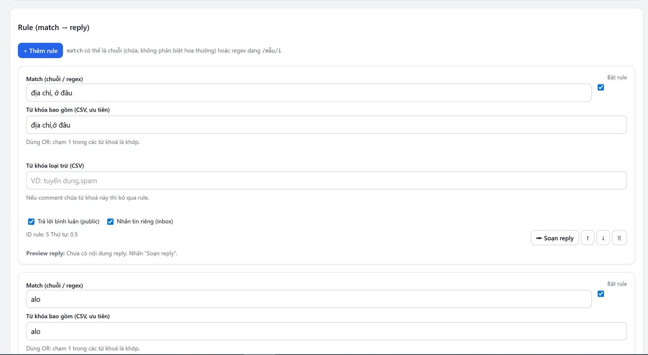Cấu hình từng rule hoạt động độc lập.